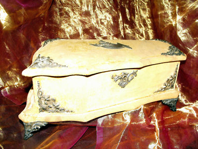 Title (ebay affiliate link): Antique Ormolu French Velvet padded Jewelry Box musical casket 1900 w Key