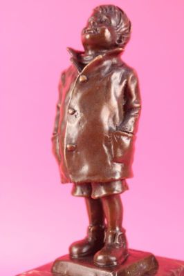 Art Deco European Little Boy Bronze Sculpture Statue Signed Figure Figurine NR