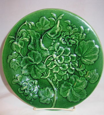 Wardle of England Stunning Majolica 9in Geranium Glossy Rich Green Plate c1890