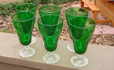ANCHOR HOCKING FOREST GREEN BOOPIE BURPLE ICE TEA GOBLETS set of 6