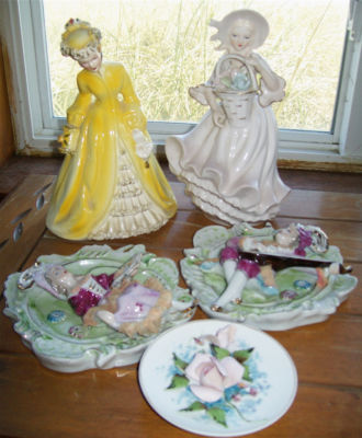 Title (ebay affiliate link): 5 Vintage Handpainted Porcelain Figurines - Lenwile Lamp, Lefton & Lovely Lady