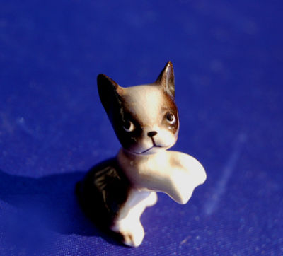 Vintage porcelain tiny Boston terrier puppy dog sitting up like trick circus dog