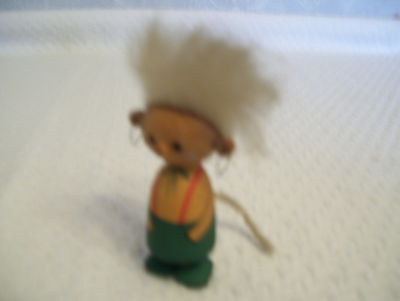 vintage BORK, SWEDEN hand-carved wood Christmas elf,gnome,troll; earrings & tail