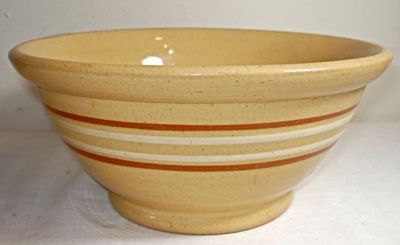Antique Vintage Yelloware Mixing Bowl Brown & White Bands