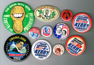 Title (ebay affiliate link): LOT OF (11) KERRY,HHH,MCGOVERN,NIXON,OBAMA & CARTER PINBACK BUTTONS #607