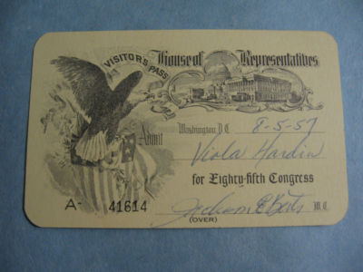VISITOR PASS USA HOUSE OF REPRESENTATIVES 85TH CONGRESS 1957
