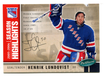 2005-06 Parkhurst Henrik Lundqvist Facsimile Autograph RC #599 #/100 Rangers