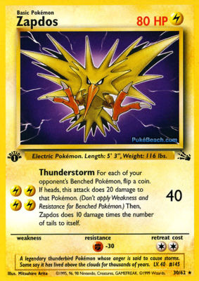 Title (ebay affiliate link): Pokemon Card Fossil First 1st Edition Zapdos 30/62 RARE! MINT CONDITION!