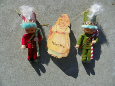 Title (ebay affiliate link): 2-Vintage Toy Dolls Christmas plastic & felt ornament & Paper Doll ornament
