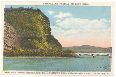 Title (ebay affiliate link): EARLY POSTCARD SHIKELLAMY PROFILE ON BLUE HILL SUSQUEHANNA TRAIL SUNBURY PA
