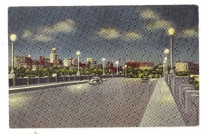 NIGHT VIEW FROM VIADUCT DALLAS TX TEXAS LINEN POSTCARD