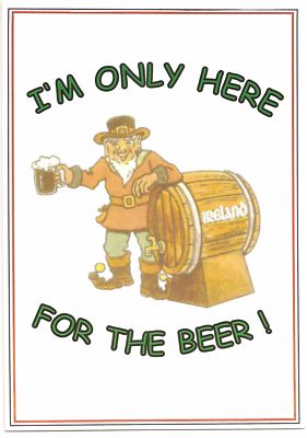 Title (ebay affiliate link): "I'm Only Here For The Beer" Funny Irish Post Card New