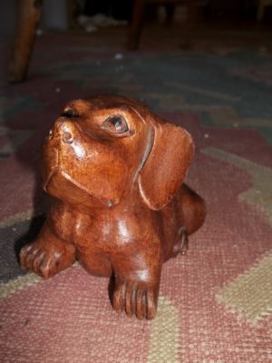 Vintage Hand Carved Wood Dog Mutt Hound Unique Folk Art