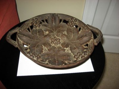 Antique Vintage Black Forest Carving Footed Fruit Bowl Music Box Grapes Leaves