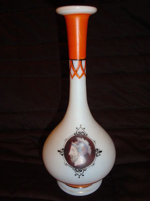 Title (ebay affiliate link): Antique Vintage Frosted Unique Portrait Vase Orange Handpainted Porcelain Roman?