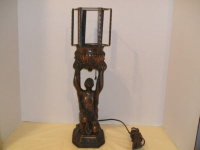 vintage Art Deco Indian Maiden figural spelter metal lamp