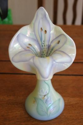 Title (ebay affiliate link): Fenton Glass Vase with Hand-Painted Iris Flower, Excellent Condition!