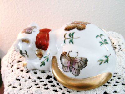 Title (ebay affiliate link): Antique Fine Porcelain Cat with Butterflies & Bow - EXTREMELY CUTE!!! c1960s