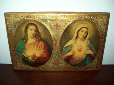 Title (ebay affiliate link): ITALIAN FLORENTINE GOLD Tole SACRED HEARTS Icon JESUS CHRIST MARY MOTHER of GOD