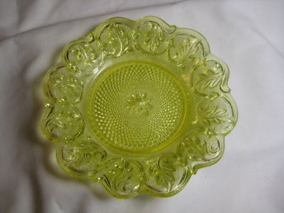 Title (ebay affiliate link): 1840S LACY COLORED FLINT GLASS PLATE FRENCH CANARY VASELINE FLORAL STIPPLED