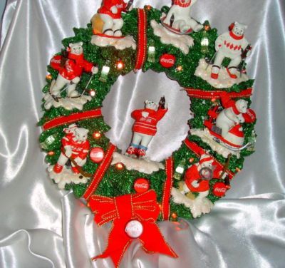 Title (ebay affiliate link): Coca-Cola Polar Bear Light Up Holiday Christmas Wreath 13"