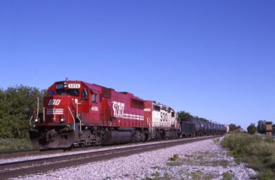 Original Slide SOO LINE SD60 #6056+6608 @ Watertown WI - 2003 w/Train