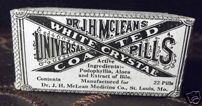 Title (ebay affiliate link): ANTIQUE PHARMACY DR. J.H. MCLEANS UNIVERSAL PILLS ~ GREEN BOTTLE WITH BOX!
