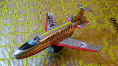 Title (ebay affiliate link): Japanese Tin AA 727 jet airliner, Friction works, 1960s, stocking stuffer!!!