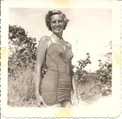 Title (ebay affiliate link): Vintage 1940's Circa Photograph - Blonde In Bathing Suit Posing on Beach (b)