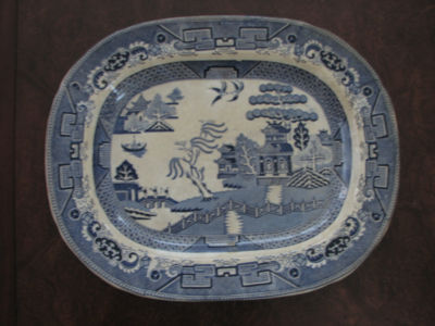Large Stoneware Early 1800s Blue Willow Platter