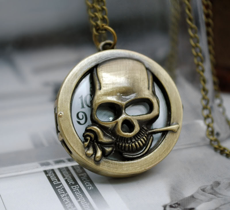Title (ebay affiliate link): Copper POCKET WATCH CLOCK Skull head Pendant Long NECKLACE