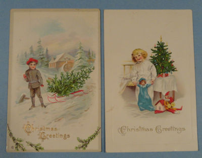 Antique EMBOSSED CHRISTMAS CARD Lot - DOLL/TREE/TOYS