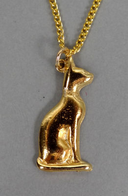 Title (ebay affiliate link): Egyptian 22kt GP Seated Bastet Cat Pendant w/ Chain
