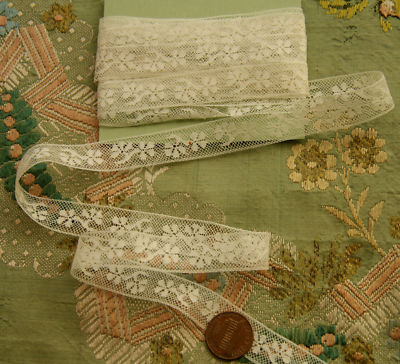 ANTIQUE COTTON FRENCH TINY TULLE FLOWER LACE 3.25 YARDS DOLL DRESS BEAR HAT TRIM