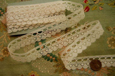 Title (ebay affiliate link): ANTIQUE COTTON RIBBON THREADING BEADING LACE 2.5 YARD FRENCH DOLL DRESS RUFFLING
