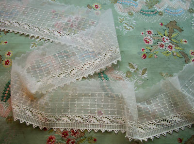 Title (ebay affiliate link): ANTIQUE FINE COTTON TAMBOUR SCHIFFLI TULLE NET LACE 4X45 FRENCH DOLL MILLINERY