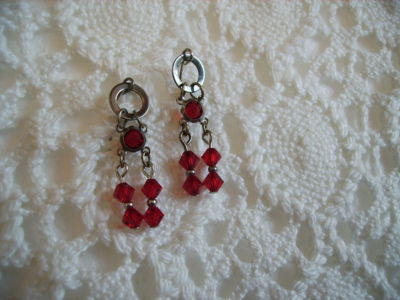Title (ebay affiliate link): ArtDeco~Crystal~Glass~Earrings~Ruby~Red~Dangle~Jumeau~Bru~Bisque~Antique~Doll