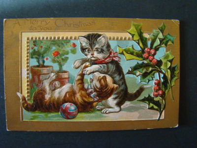 Title (ebay affiliate link): NY76 CHRISTMAS Post Card embossed 2 Kittens handwritten message on Rev