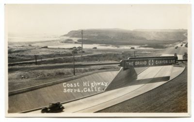 Title (ebay affiliate link): SERRA, CA. COAST HIGHWAY & SANTA FE RAILROAD BRIDGE 1920s CAR REAL PHOTO RPPC