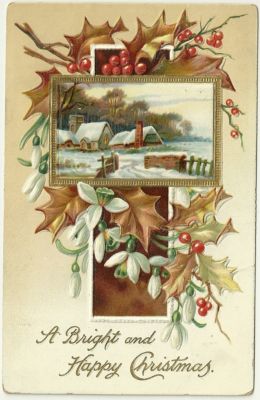 Title (ebay affiliate link): RARE Xmas Postcard Embossed Christmas HOMESTEAD Holly TREES 1909 mailed