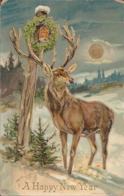 Title (ebay affiliate link): 1912 New Year Postcard of Big Deer With Antlers and Moon