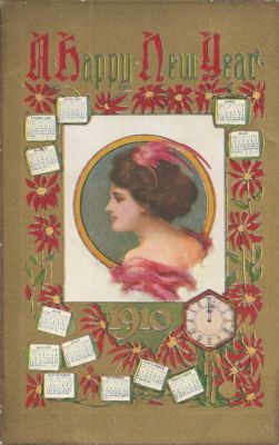 Old New Year Calendar Postcard for 1910 of a Lovely Lady