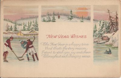 Old New Year Postcard of Boys Playing Hockey on the Ice - Series 1257 D