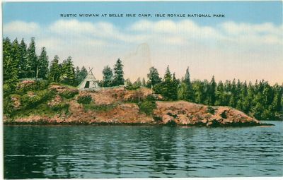 Title (ebay affiliate link): Vintage Isle Royale Mi postcard,Wigwam,Belle isle camp,Mi,Vintage MI postcard