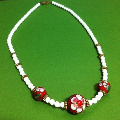 Title (ebay affiliate link): ELEGANT CHUNKY GUILLOCHE BEADS & MILK GLASS VINTAGE NECKLACE