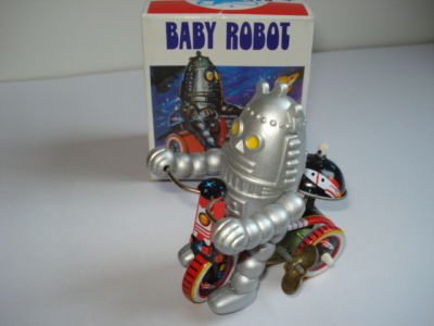 Rare Retro Collectors Wind Up Baby Robot on Bike