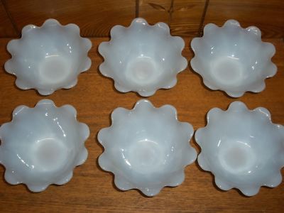 Set of 6 Vintage Milk Glass Bowls With Blue Hue