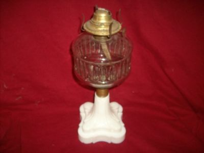 Title (ebay affiliate link): Antique Milk White / Milk Glass Oil Lamp / Light Brass Collar Lighting Early One