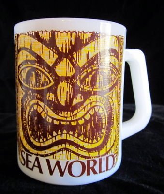 Title (ebay affiliate link): Vintage Tiki Cup Mug Fire King Milk Glass Sea World Souvenir Coffee Tea Fireking