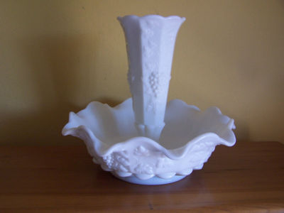 Title (ebay affiliate link): Vintage Marked Westmoreland Glass Co. Milk Glass Paneled Grape Epergne